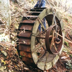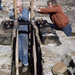 The project to rebuild one of the buddles, and install a wheel and watercourses to power it, was funded by the Friends of Killhope and carried out our volunteers, Ian Jowett, Russ Parkin with help from other members of the Friends. Having a buddle in working condition on the site means that the separation process can be demonstrated to visitors.